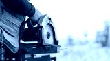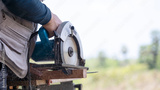 Carpenter Cutting Wood with Circular Saw in Outdoor Setting