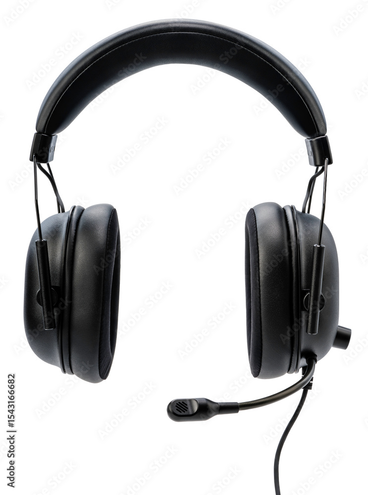 Black Gaming headset isolated on white background With clipping path, Computer headphones with microphone E sport Game device.