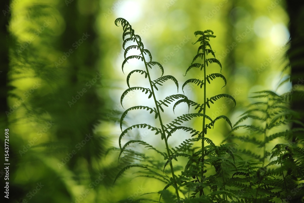 Fern in the forest on a sunny spring morning, Poland