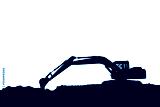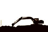 Crawler excavators silhouette are digging the soil in the construction site , on the white background