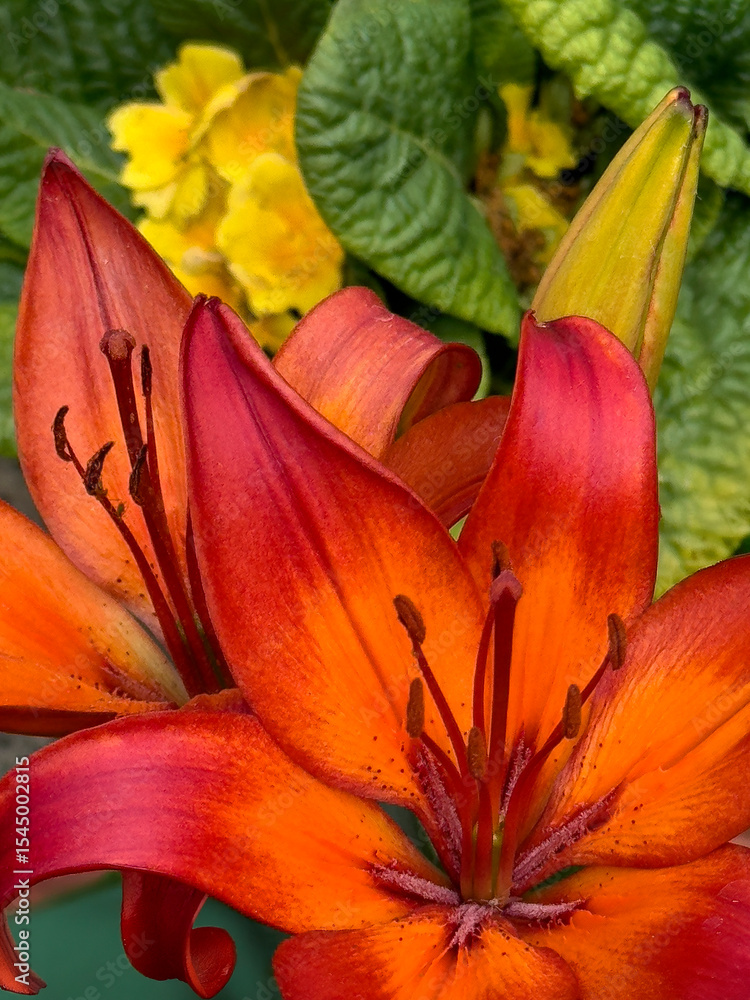 Fire Lily - Lilium bulbiferum - growing in a garden in North Yorkshire, England
