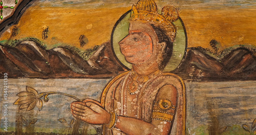 Close-Up View on Hanuman. Frescoes On Wall Of Hanuman Temple In Jaipur, India. Religious Motifs From Life Of Hanuman Are Painted. Monkey-like Deity, Son Of Wind God Vayu. Hanuman Also Known As Maruti