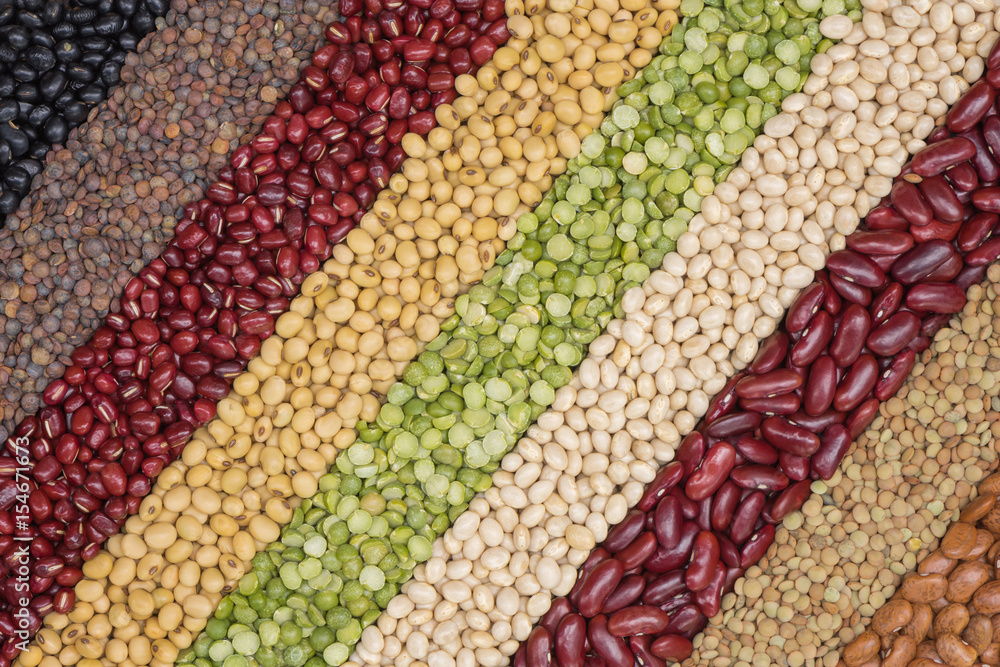 Multicolor dired legumes for diagonal background, Different dry bean for eating healthy
