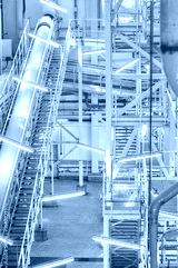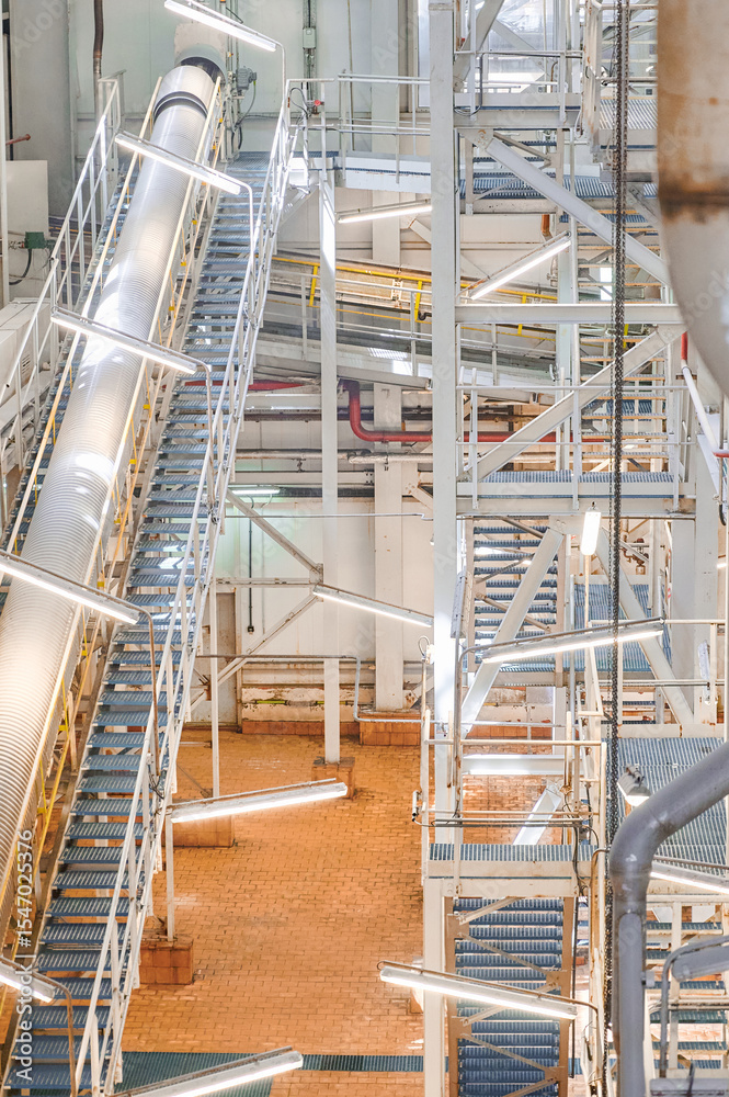 Industrial chemical plant featuring extensive pipelines and conveyor systems for efficient processing and transportation of materials