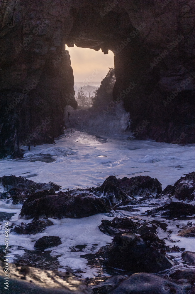 A sunset sky peeping thought the keyhole arch at Pfeiffer Beach, near Big Sur California.