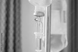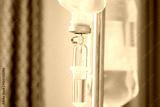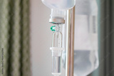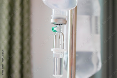 Close up medical intravenous IV drip in hospital background