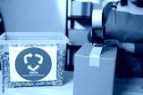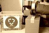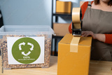 A woman using kraft paper tape to seal a cardboard box in a home-based business, highlighting eco-friendly packaging and sustainable practices in small business operations
