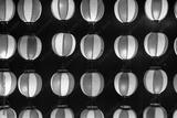 Traditional red and white Japanese lanterns with warm illumination at dark background