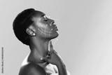 Woman showcasing skincare techniques for facial rejuvenation in a serene studio setting during daylight