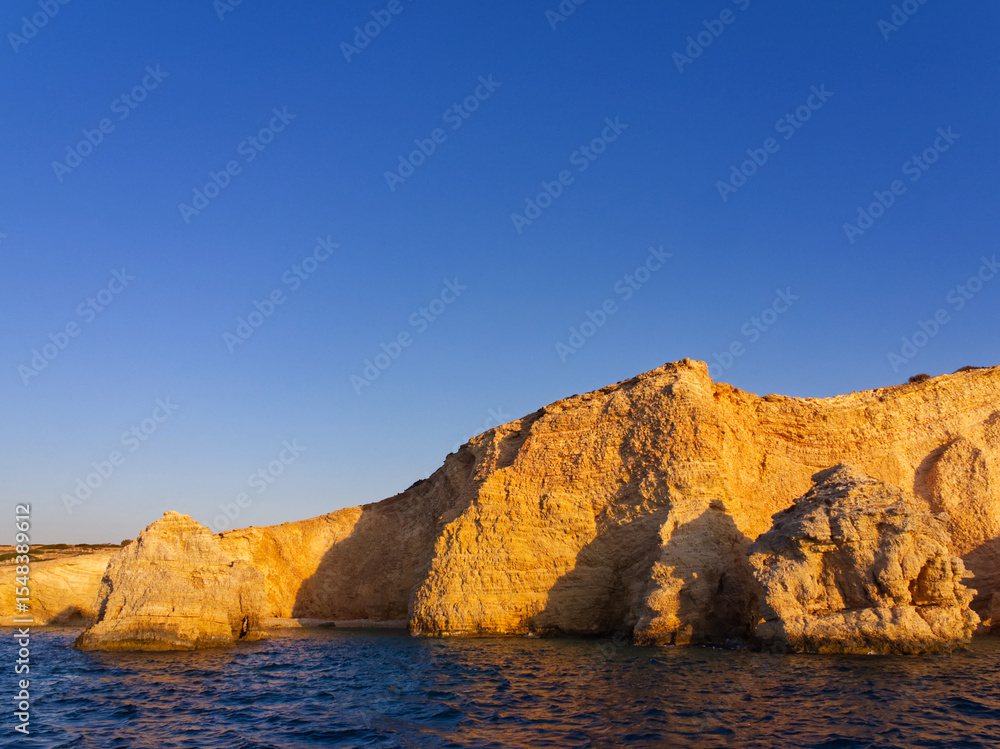 Golden cliffs meet blue sea and sky in Koufonisi island Aegean