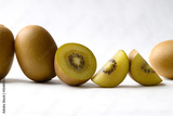 Fresh sliced sungold kiwi fruit on white background, Healthy eating