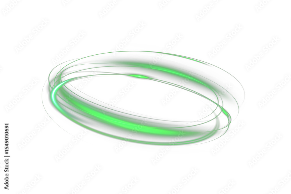 Futuristic, swirling green neon light PNG - transparent background, glowing trace, abstract twisted rays, sparkling energy movement, rotating wave lines, high-tech speed effect design.