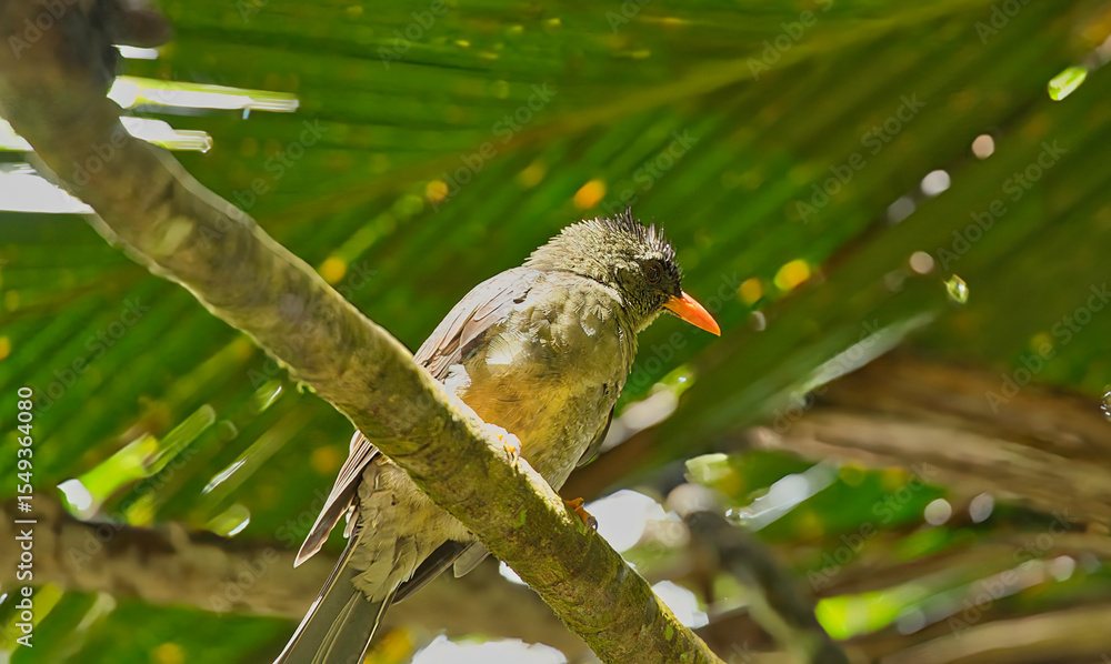 Single Seychelles bulbul bird on branch, Mahe, Seychelles