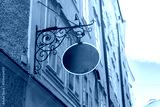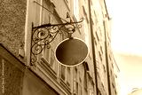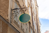 Classic round green signage with gold trim and ornate bracket, perfect for vintage-themed branding, boutique shops or historic district businesses.