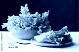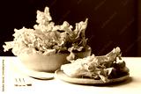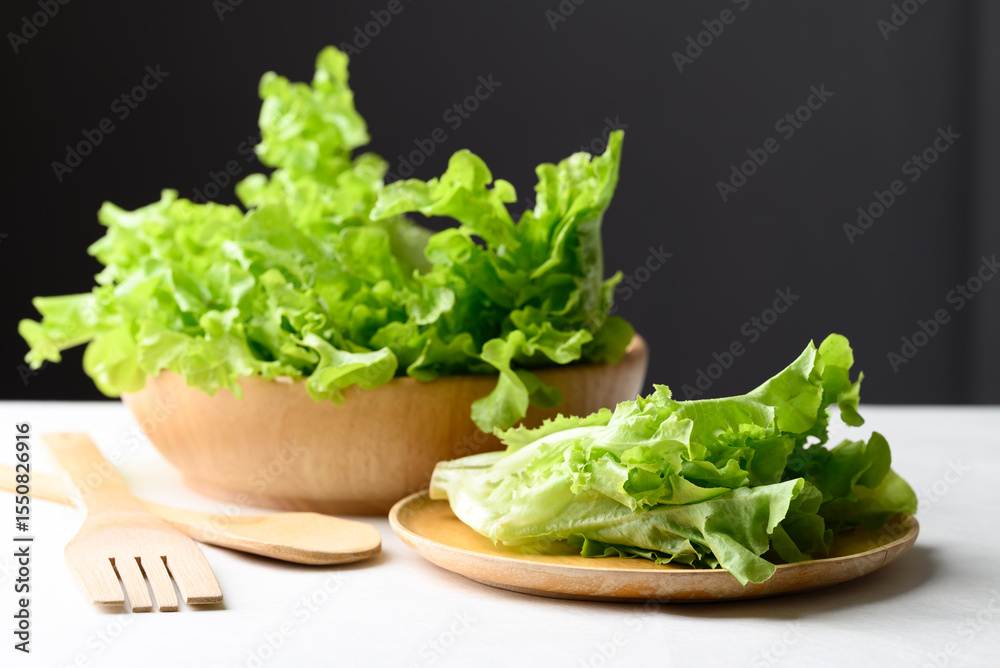 Organic green oak lettuce on wooden plate and bowl, Fresh vegetable, Healthy eating