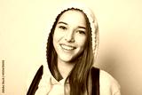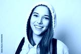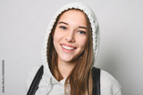 Portrait of teenage student girl in casual t-shirt on light background in studio.