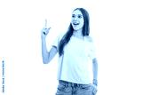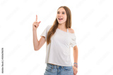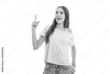 Portrait of teenage girl in casual t-shirt on light background in studio.