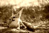 Cape fox laying in the sand in Kgalagadi.
