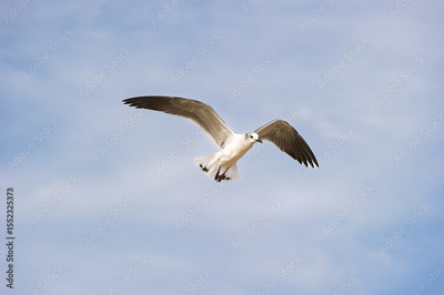 Seagull Pacific Coast Seabird White Flying Spreading Wings Soaring Closeup
