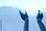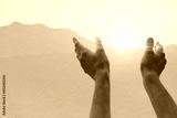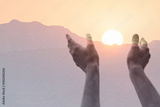 hands up to the sun at dawn, praise, worship concept