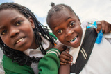 Premium close-up of happy African schoolchildren in uniforms, laughing together outdoors. A powerful and uplifting image capturing real joy, childhood, and cultural connection.