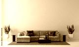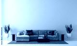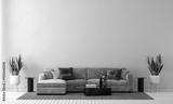 Modern minimal living room with luxury sofa and empty white pattern wall background. 3d render.