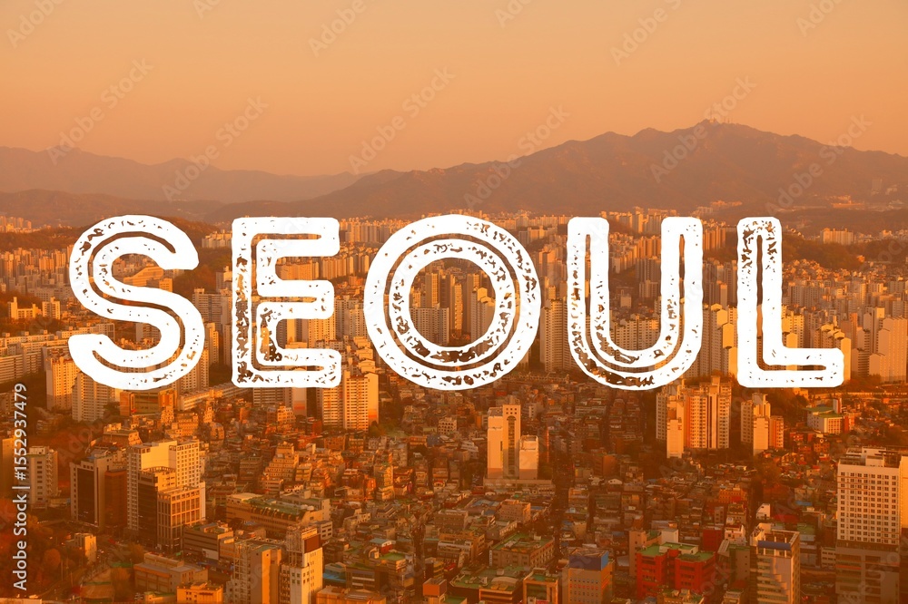 Seoul city name word modern photo postcard