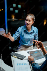 Team of programmers working late at night at a software development company, web developers, and coders working in the software company's office.