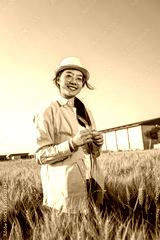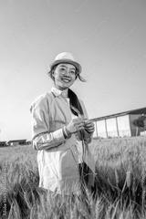 : Thai Woman Farmer Smiling While Holding Wheat in Golden Field