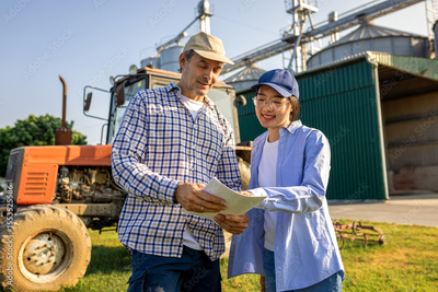 Thai Female Farmer and Senior Male Discussing Future Work on Sheep Farm