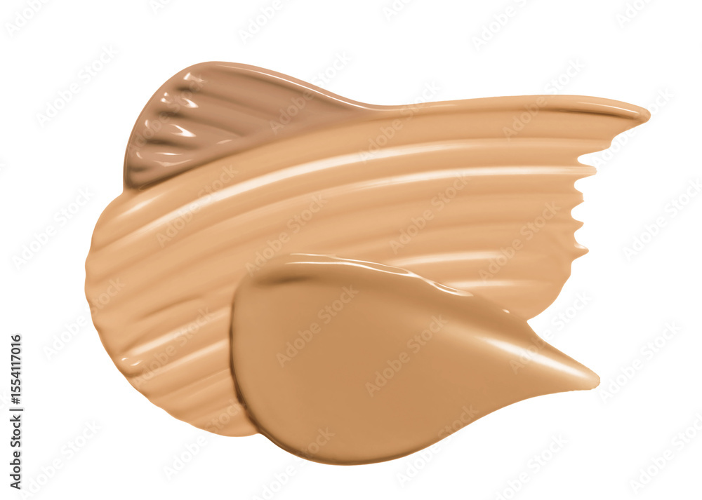 Makeup foundation cream swatch. BB cream, liquid concealer brush stroke isolated on transparent background. Brown cosmetic product smear closeup