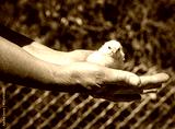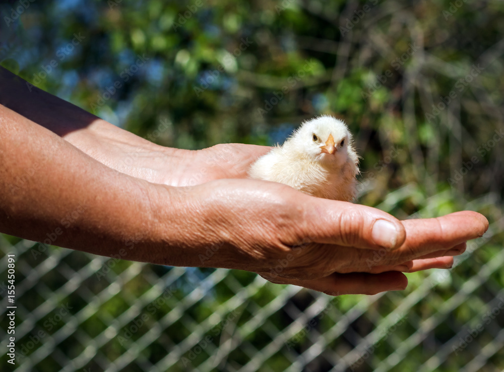 Small chicken in his hands