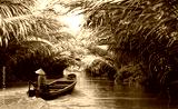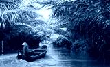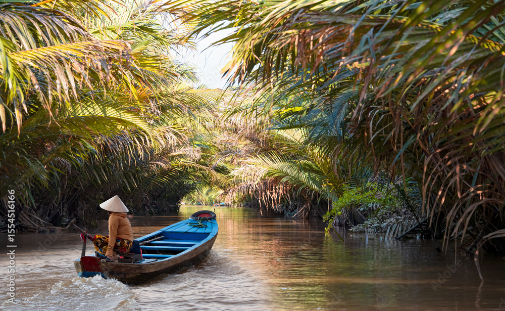 Fisherwoman is fishing in Mekong river in the morning - People boating in the delta of Mekong river, Vietnam, Asia