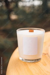 Scented candles on a wooden table.