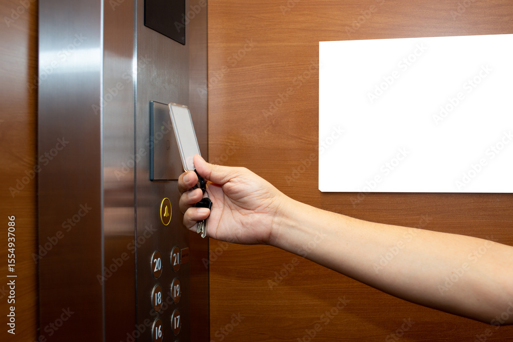 Hand and card to close-open the elevator door