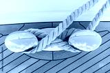 Bollard (cleat) with mooring line on superyacht. Mooring gear on yacht. Superyacht equipment. Top view.