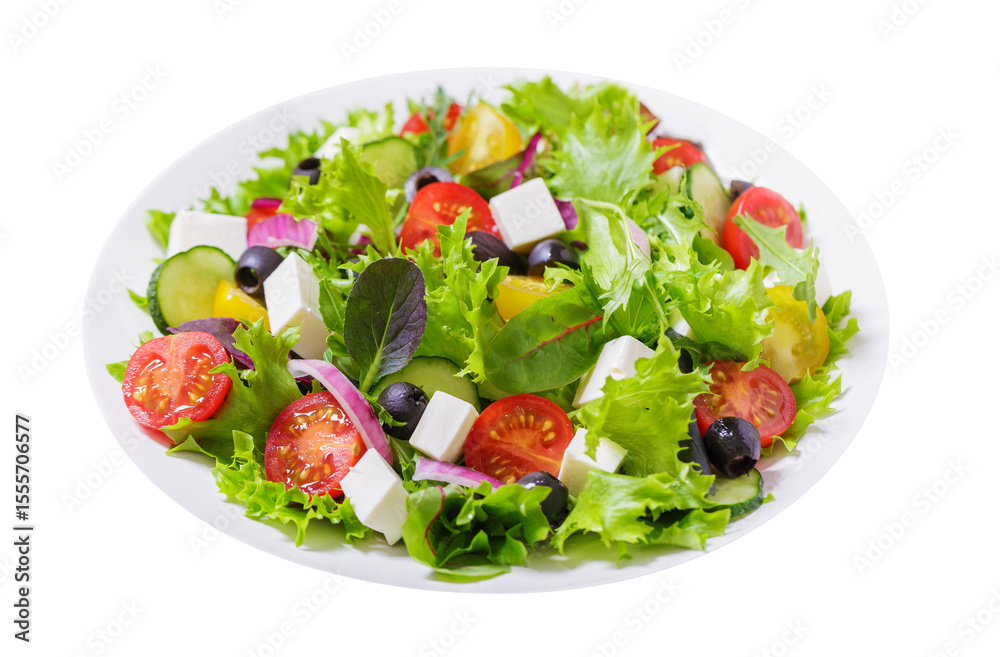 plate of salad with fresh vegetables and feta cheese isolated on transparent background