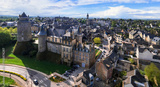 Chateaugiron Castle, Brittany, Ille-et-Vilaine department in France - picturesque medieval fortiefied village near Rennes. aerial panoramic view