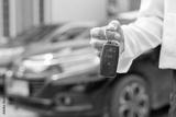 Used car, rental car, sell, buy. happy pass on key for new owner. Sales, loan credit financial, rent vehicle, insurance, renting, Seller, dealer, installment, car care business