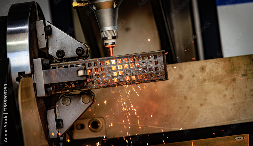 CNC Laser and gas cutting of metal, modern industrial technology.