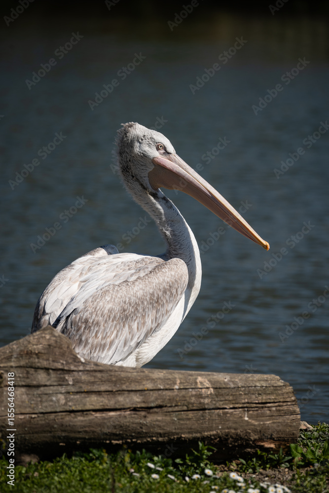 Environmental Portrait of Curly Headed Dalmatian Pelican Pelecanus Crispus on water
