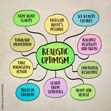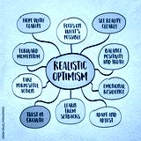 Realistic optimism - mindset that combines a hopeful outlook with an honest assessment of reality. Infographics mind map.