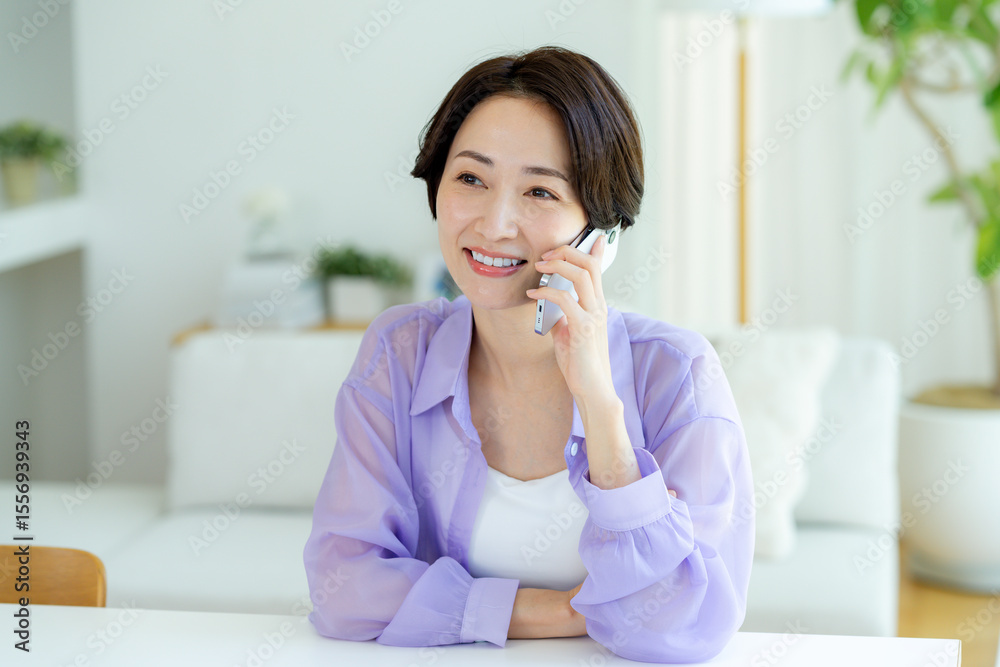 スマホで電話するミドル女性