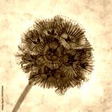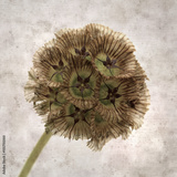 textured old paper background with seed head of Lomelosia stellata, paper moon
