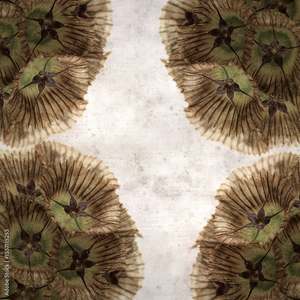 textured old paper background with seed head of Lomelosia stellata, paper moon