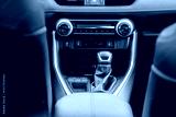 A close-up of the gearbox of a modern, new car. Concept of stylish design, shopping, and car parts.