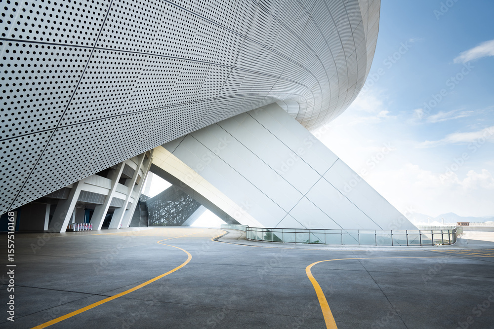 Empty road outside the modern building