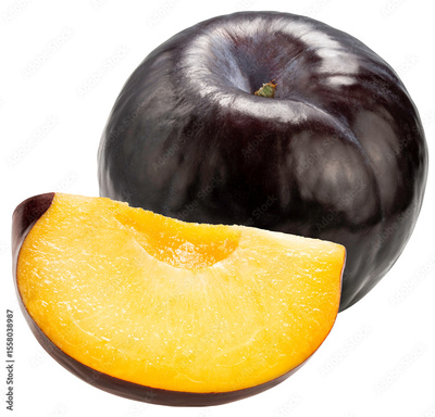 Fresh Black Plum isolated on white background, Black Plums fruits PNG File.