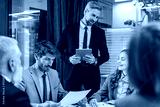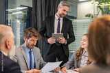 Business team discussing together business plans in office.