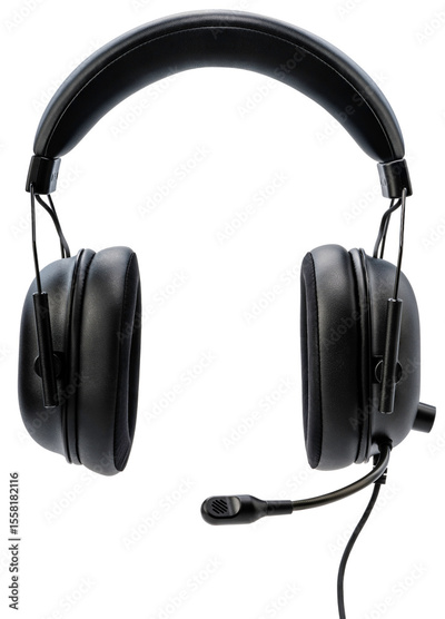 Black Gaming headset isolated on white background With clipping path, Computer headphones with microphone E sport Game device PNG file.